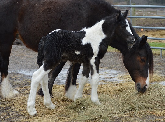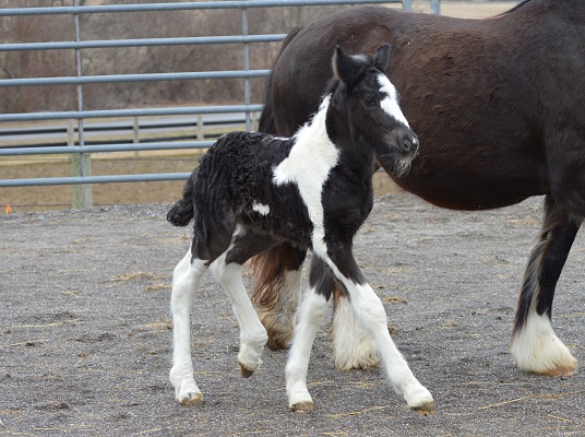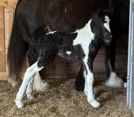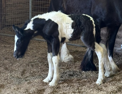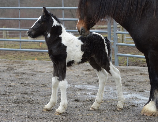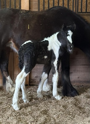 1. (GYPSY VANNER) Rosewater Cassidy of Chestnut Oak x EBV Zoria, due 3/7/26. (It's a Black & White Colt, E/?, a/a, n/T), Chestnut Oak's Atlas, born 3/3/26, AVAILABLE!
