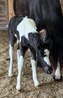 2. (FOUNDATION DRUM) Rosewater Cassidy 'Sid' x Freya of Chestnut Oak Farm, due 4/13/24. (It's a Black & White Colt, E/?, a/a, n/T), Chestnut Oak's Noble, born 4/4/24, SOLD!