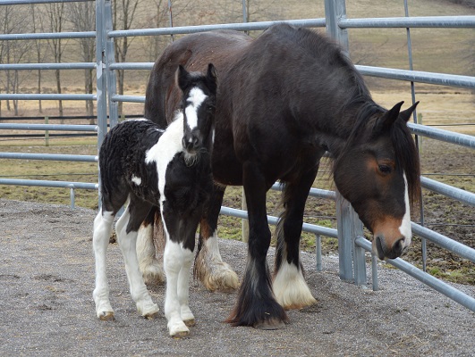 7. (GYPSY VANNER) Rosewater Cassidy of Chestnut Oak 'Sid' x EBV Zoria, due 11/10/23. (It's a Black Filly, E/e, a/a), Chestnut Oak's Zarra, born 12/2/23, SOLD!