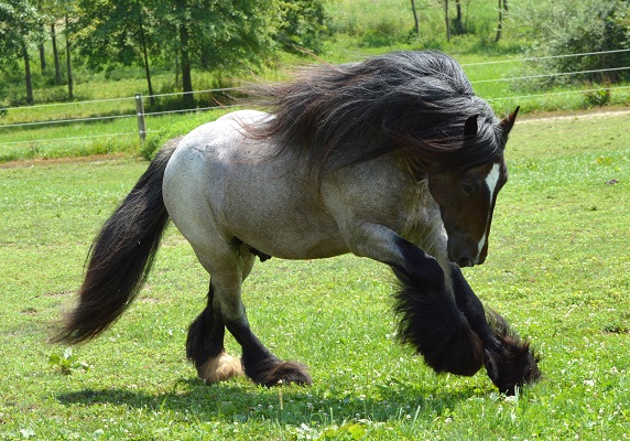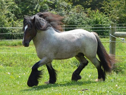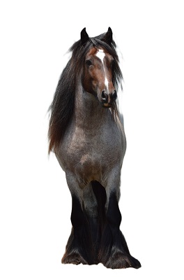 Meet High Valley Bonfire of Chestnut Oak! This amazing stallion is a grandson (sire's side) of the famous living legend Alfie of Brackenhill, who has always been one of my favorite gypsy stallions! He is also a grandson (dam's side) of the famous blue roan SD Whistler who is making headlines in the show arena! Bonfire's sire is the stunning Brackenhill Boots and his dam is the gorgeous blue roan tobiano mare, Arsenal Gypsies Shillelagh. His bloodlines include Hermit's Alfie of Brackenhill, Brackenhill Boots, Brackenhill Black Magic, Woolly Mammoth, Hermit's Duke, Hermit's Duchess, Gikes Stallion, Sweeper Mare, SD Whistler, SD Jim, SD Stevie, SD Dollar Mare and more! Bonfire is a rare Bay Roan coloring with three black stockings. With these truly legendary bloodlines, we are producing the very best quality foals with the addition of unique coloring. When bred to our mares, he can produce Blue Roan and Bay Roan colors with or without tobiano. When not hanging out with his mares, Bonfire enjoys doing tricks including sitting, bowing, and waving a flag. He is registered with Gypsy Horse Registry of America, Inc., and Gypsy Vanner Horse Society. Stay tuned for more updates about this amazing sweet boy!