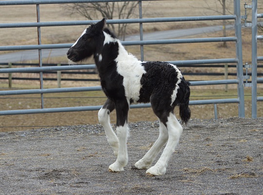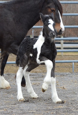 1. (GYPSY VANNER) Rosewater Cassidy of Chestnut Oak x EBV Zoria, due 3/7/26. (It's a Black & White Colt, E/?, a/a, n/T), Chestnut Oak's Atlas, born 3/3/26, AVAILABLE!